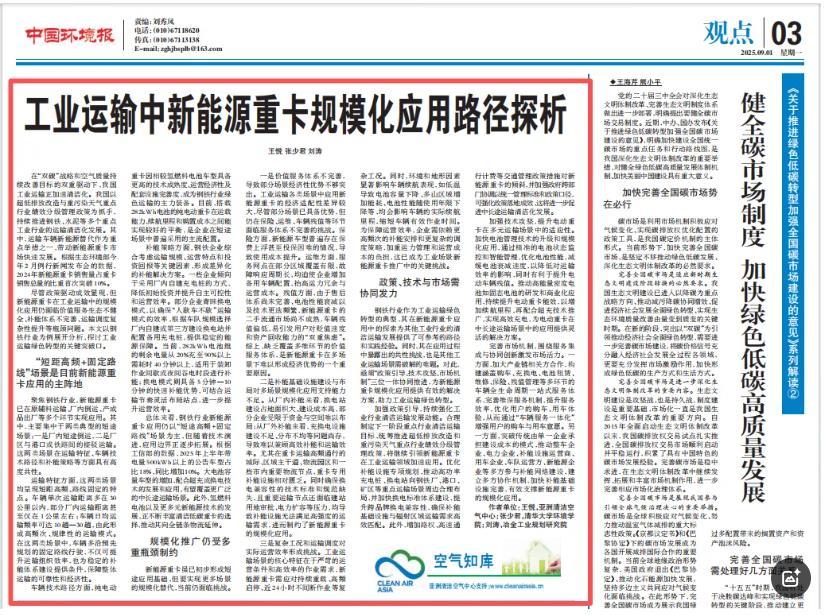 钢铁行业作为工业运输绿色转型的典型,其在新能源重卡应用中的探索为其他工业行业的清洁运输发展提供了可参考的路径和实践经验。同时,其在应用过程中暴露出的共性挑战,也是其他工业运输场景需破解的难题。对此,亟须“政策引导、技术攻坚、市场机制”三位一体协同推进,为新能源重卡规模化应用提供有效的解决方案,助力工业运输绿色转型。